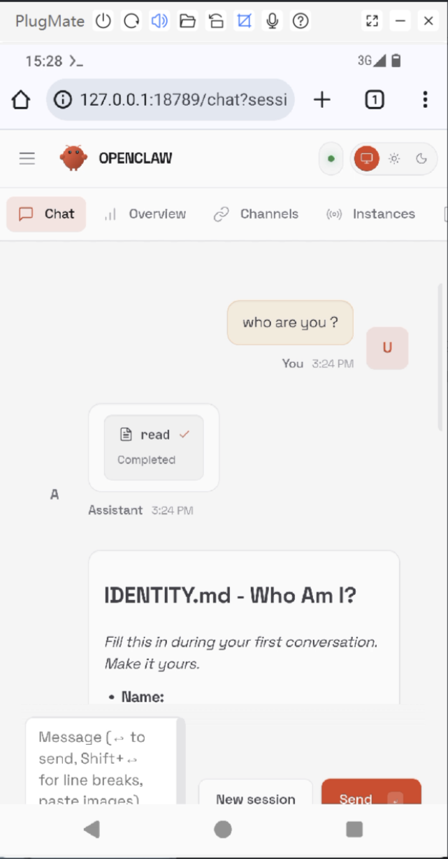 Now you can use OpenClaw via Local Web Chat.