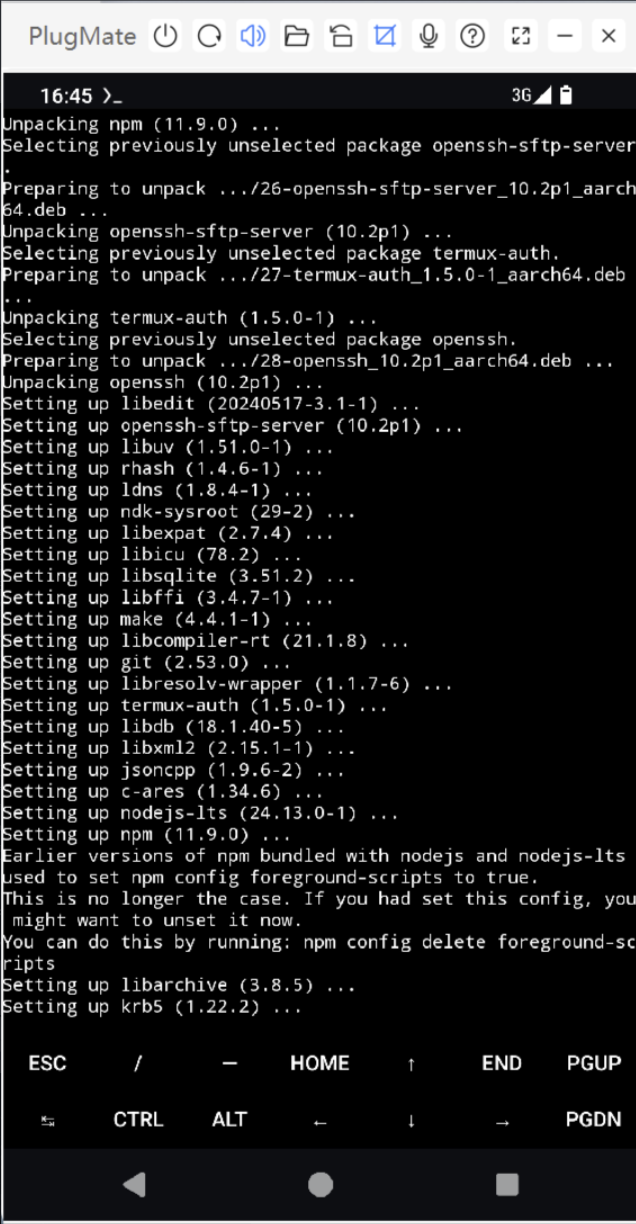 1、Install Termux via PlugOS Apps, and set the app’s battery usage to Unrestricted.