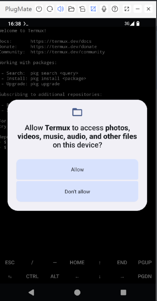 *Launch Termux and enter: termux-setup-storage.Grant access to your device storage by selecting ALLOW.